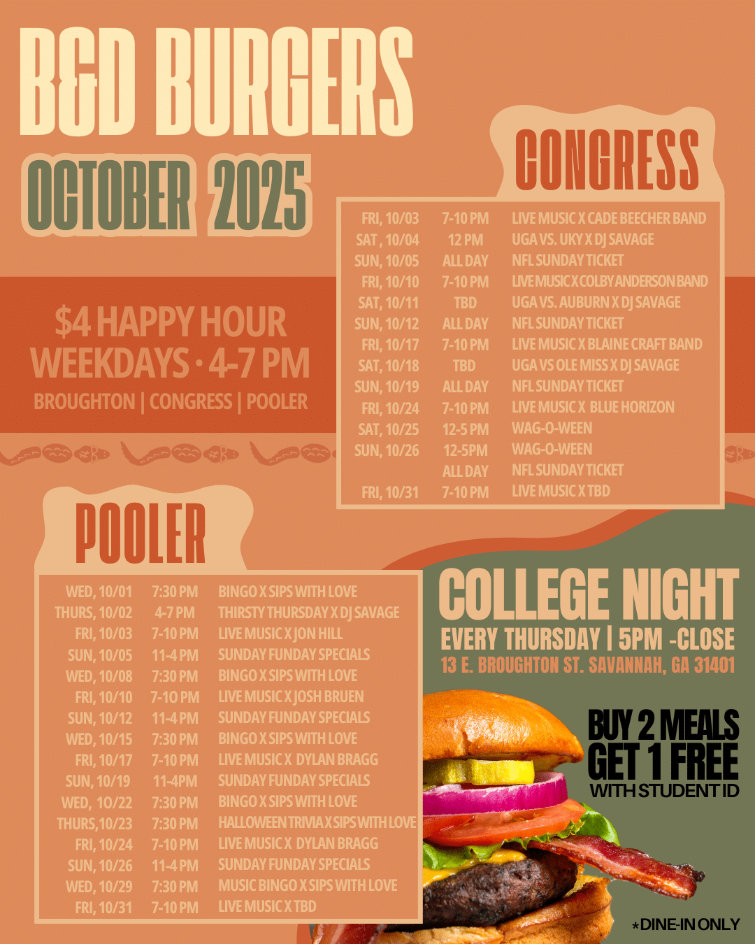 We proudly have 20+ years of winning over the burger hearts of Savannah. From huge craft beer selections, fresh salads, to our family-friendly atmosphere, we have something delicious for everyone!